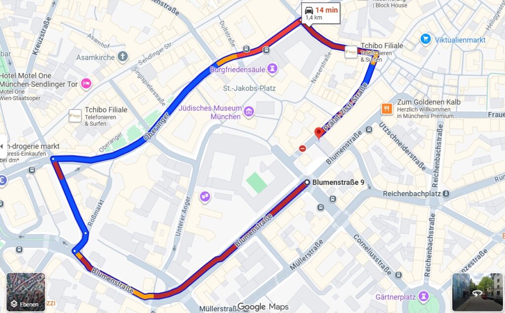 Seit 6. Oktober 2025 wird das Münchner Stadtmuseum einer mehrjährigen Generalsanierung unterzogen, was für eine sehr umstrittene neue Verkehrsführung im Umfeld sorgt. Durch die Einbahnstraßenregelung an der Prälat-Zistl-Straße vom Rosental zur Corneliusstraße ist die Zufahrt zur beliebten und zentrumsnahen Parkgarage Schrannenhalle nun stark eingeschränkt und seitens Blumenstraße nicht mehr möglich. Unnötige Umwege und zusätzlicher Umfahrungsverkehr sind jetzt an der Tagesordnung. Das Mobilitätsreferat lehnt einen einfachen Lösungsvorschlag einfach ab.